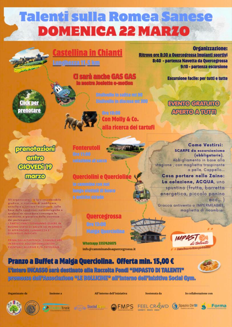 Domenica 22 marzo, dalle ore 8:30, Trekking delle colline a Quercegrossa. Una giornata insieme in mezzo alle colline del Chianti per sostenere il progetto “Impasto…